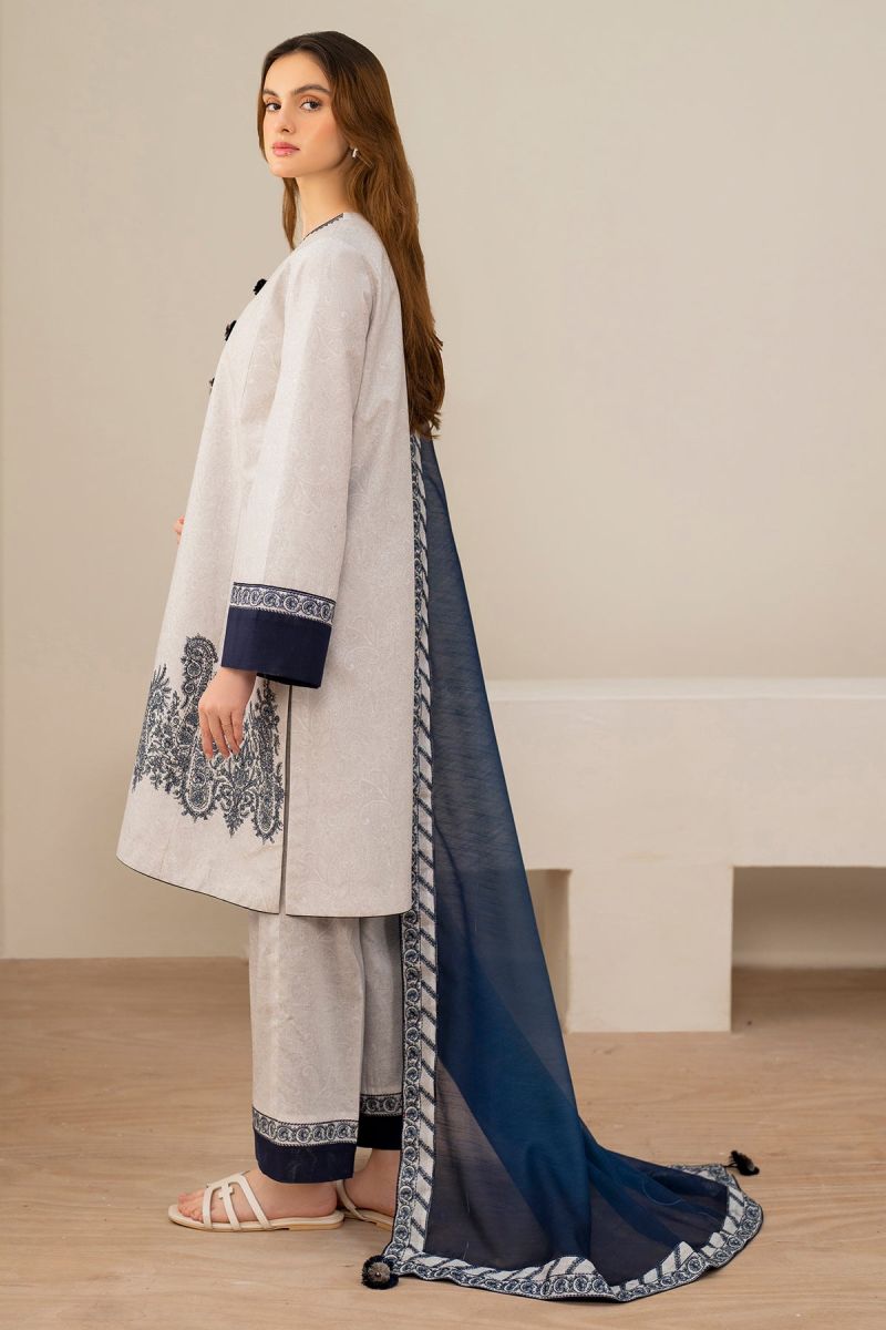 Plum 100% Cotton Lawn Black Colour Printed Almond Biege Flowers Embroidered Off White threads On Stitched 2 pc suit for Girls.