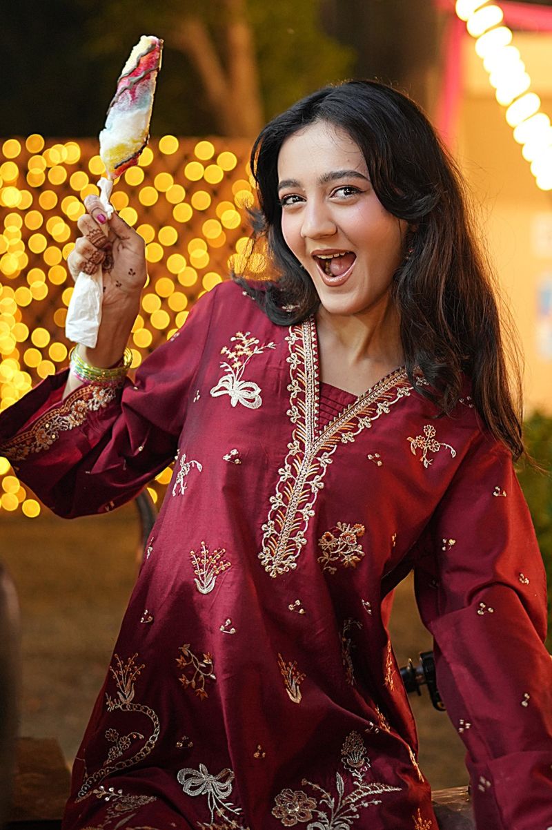 This stylish 2-piece outfit is ideal for a neat and semi-formal look. The shirt has fine detailing that gives it a graceful and slightly dressy feel, making it great for small events and daytime gatherings. It comes with matching trousers that create a clean and well-coordinated look while staying comfortable. The fabric feels airy and easy to wear, and the rich red color adds a strong and elegant touch.