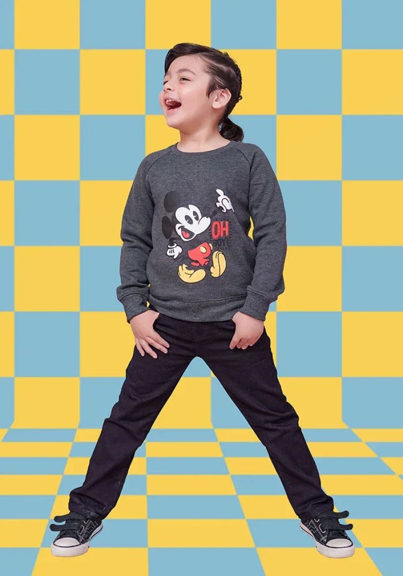 Top: Charcoal Grey Fleece SweatShirt with Print