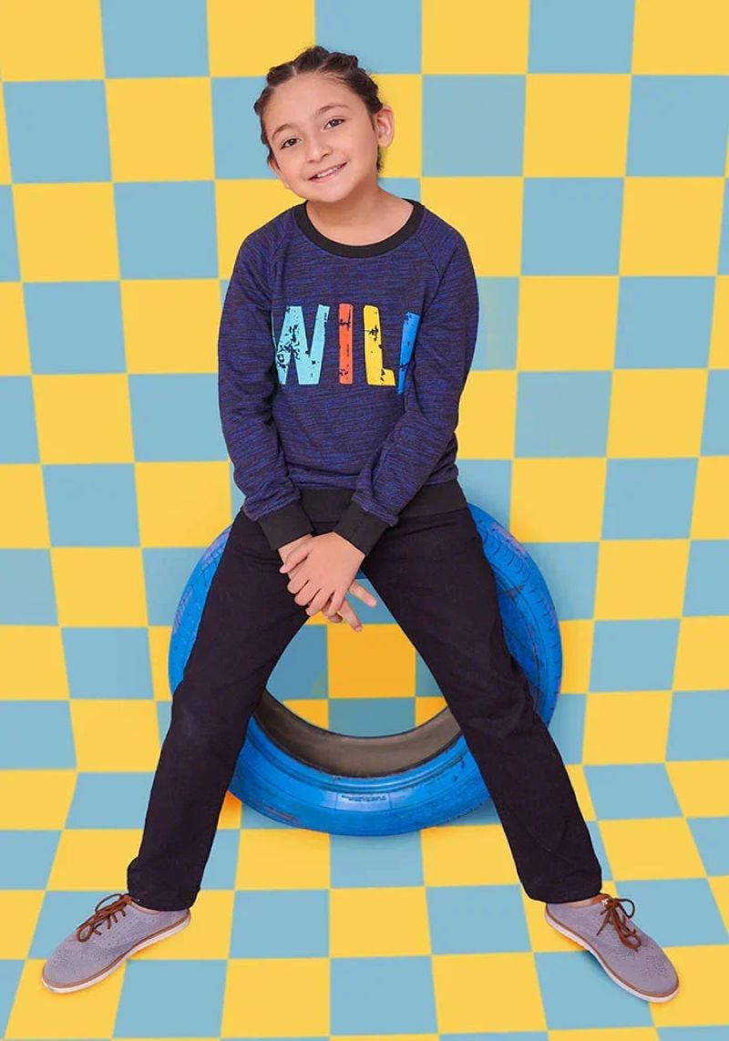 Top: Blue Terry SweatShirt with Print
