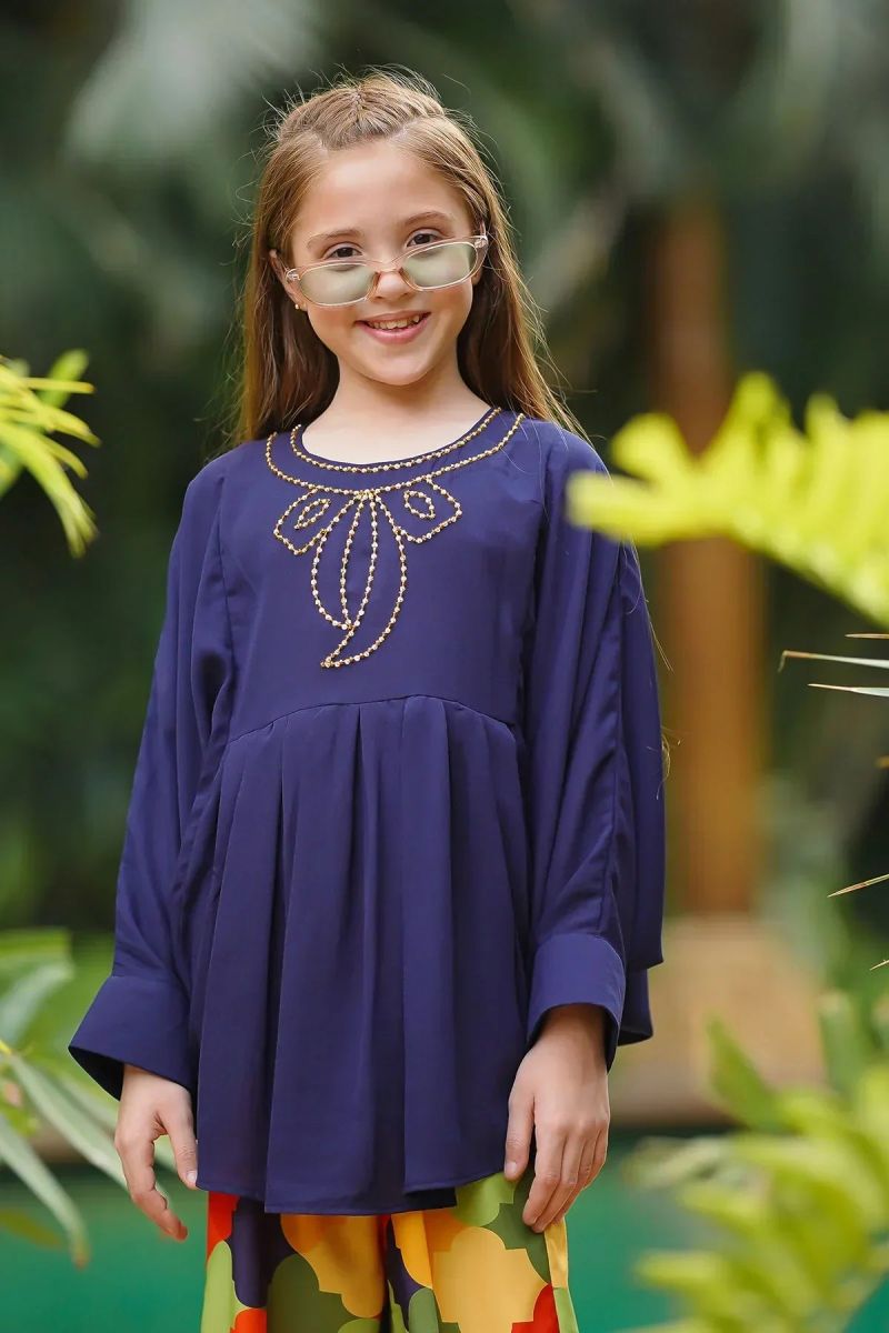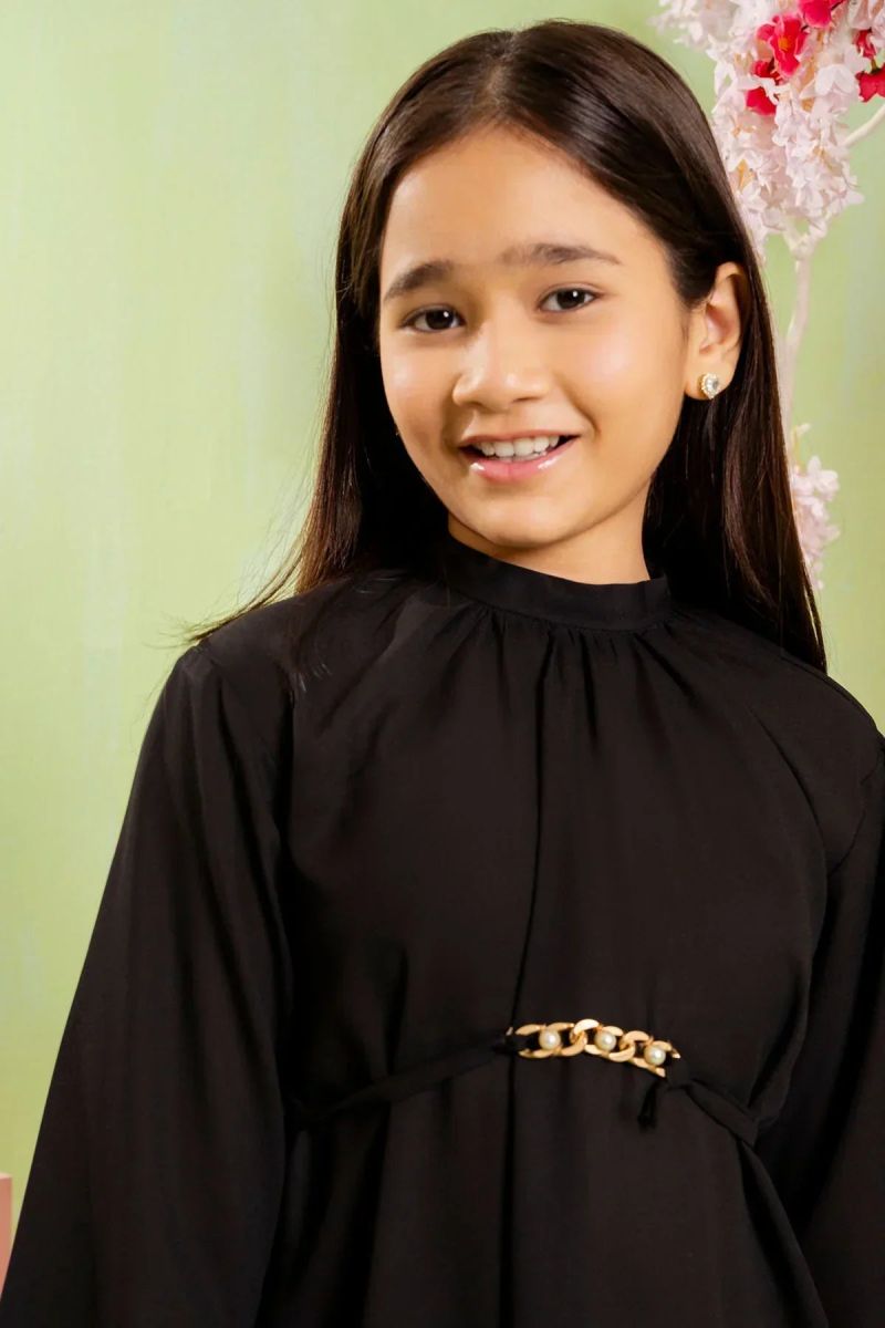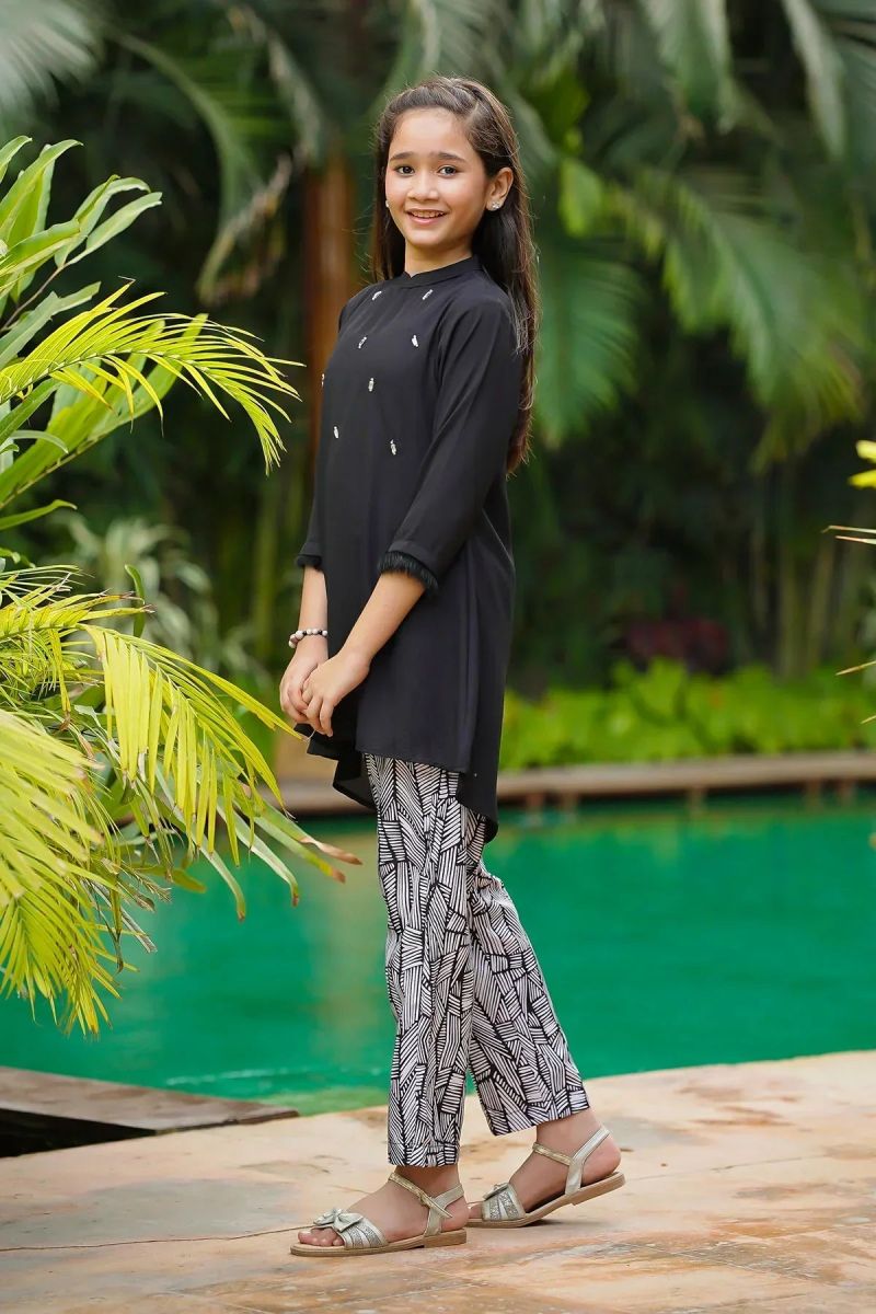 Top: Black Georgette Kurta With Golden Hook Embellishment