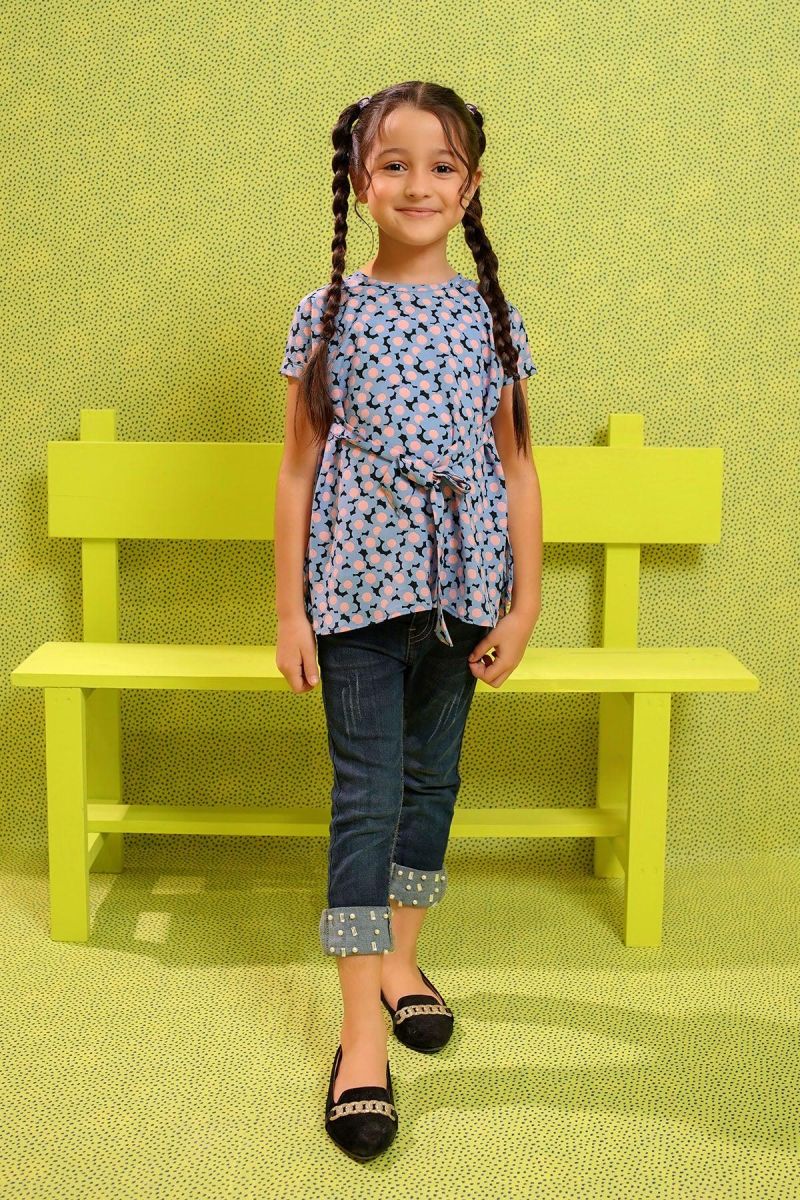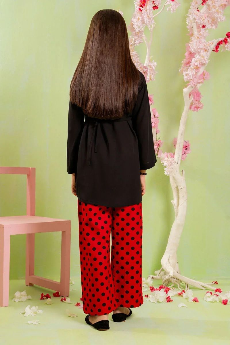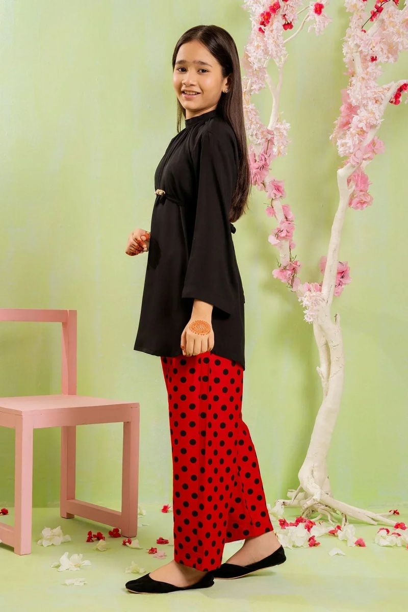 Bottom: Red Cotton Printed Bell Bottom Trouser