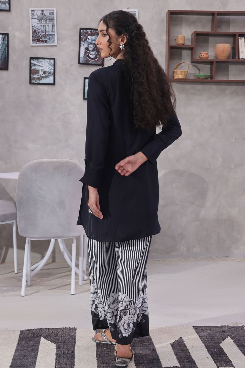 Bottom: Navy Blue Printed Malai Crepe Trouser