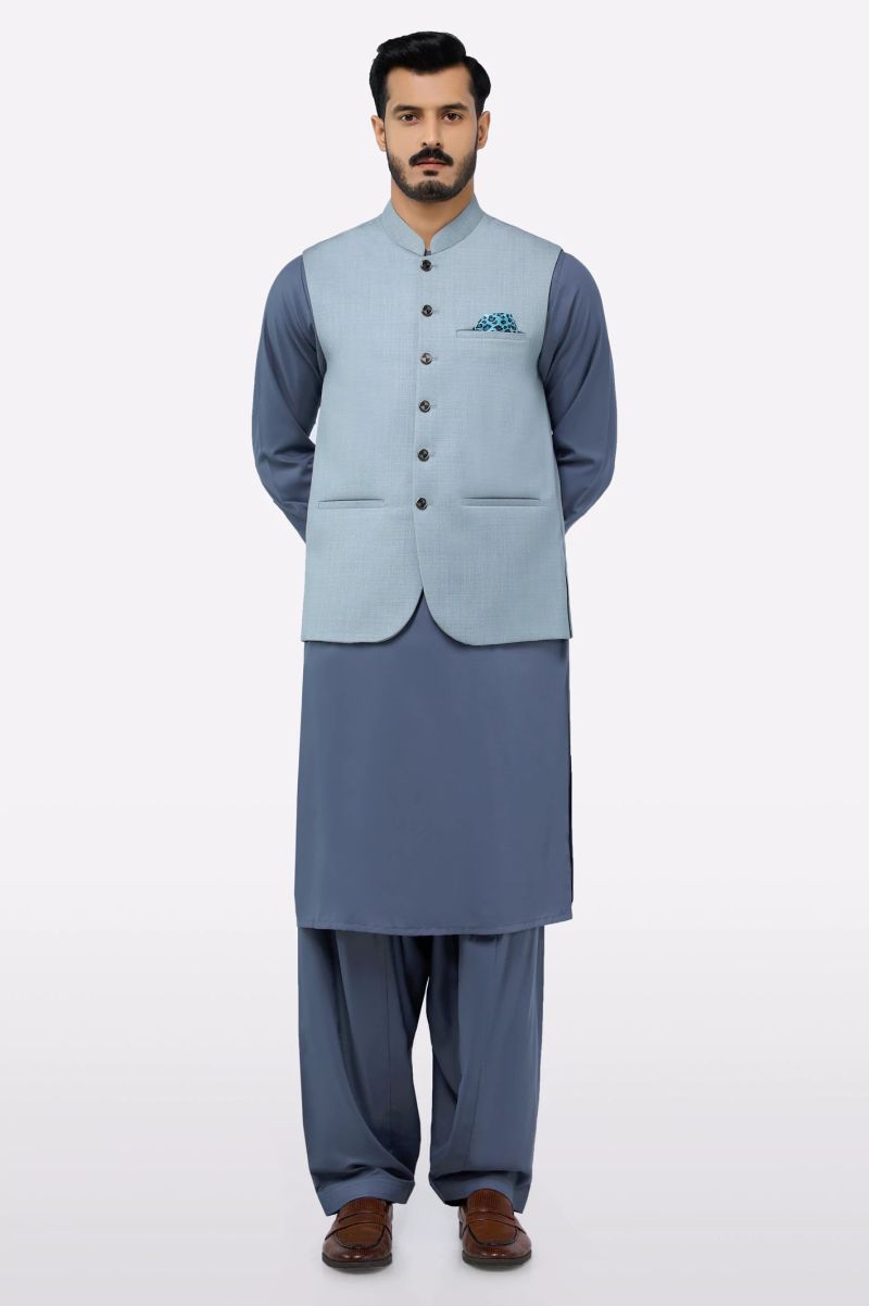 Plum 100% Cotton Lawn Dark Bue Colour Printed Yellow Green Flowers Embroidered Yellow threads On Stitched 2 pc suit for Girls.