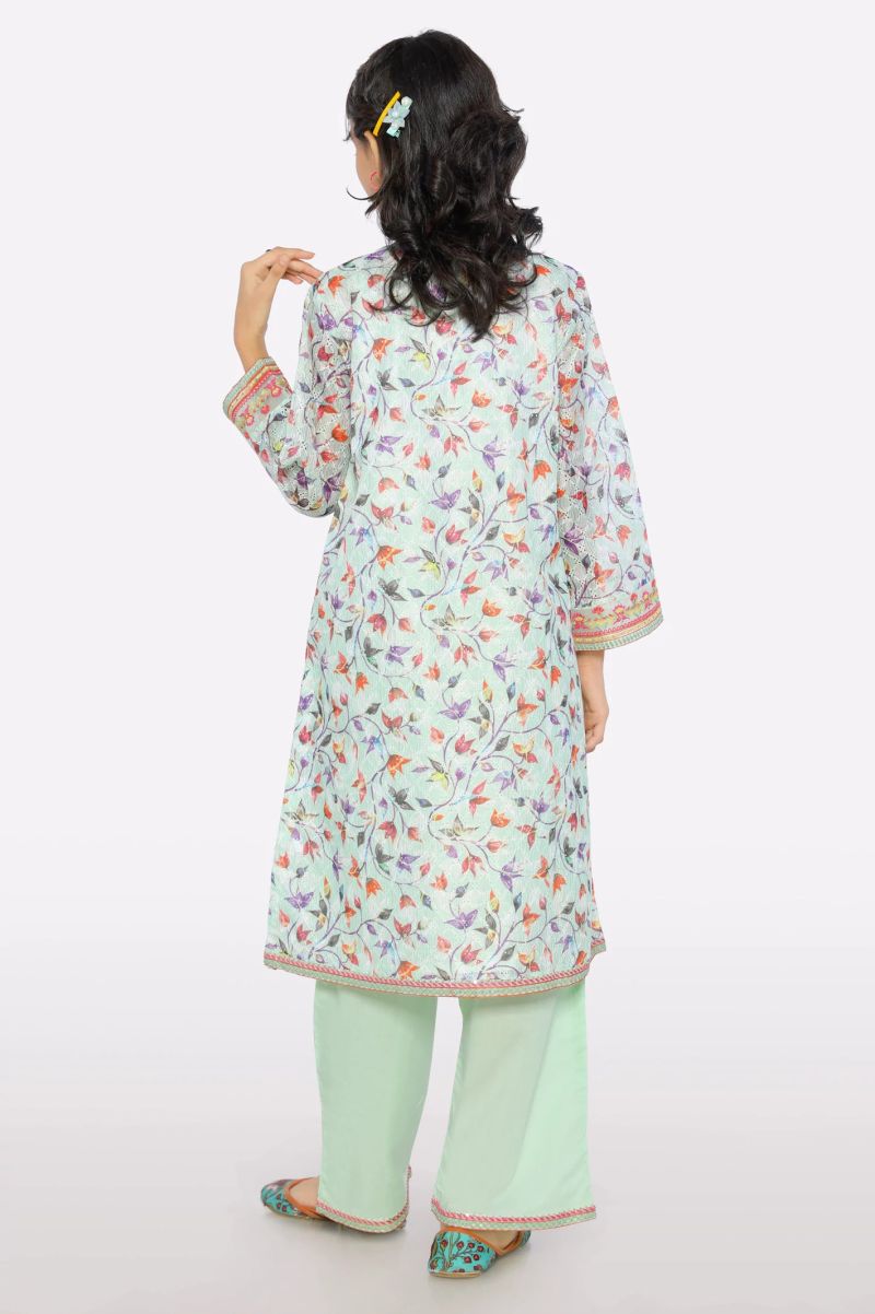 Plum 100% Cotton Lawn Black Colour Printed Sea Green Flowers Embroidered Sea Green threads On Stitched 2 pc suit for Girls.