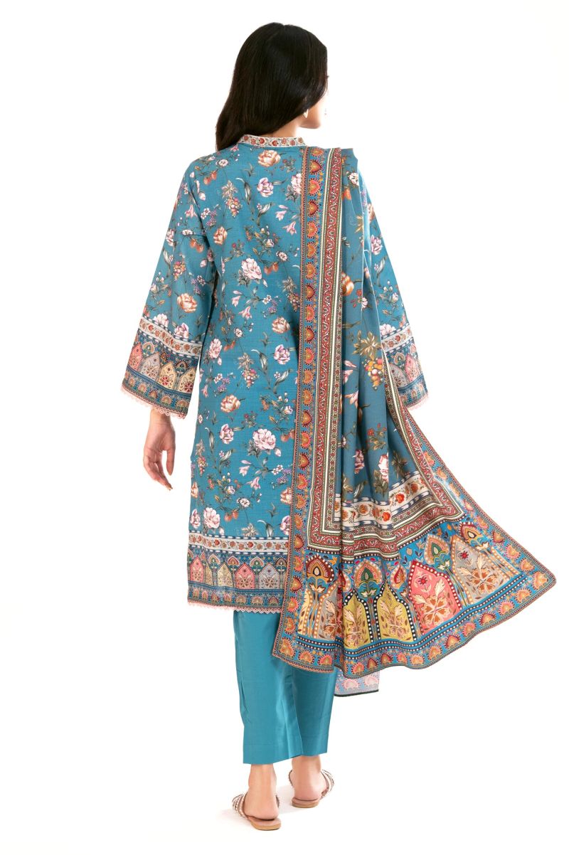 Plum 100% Cotton Lawn Dark Bue Colour Printed Yellow Green Flowers Embroidered Yellow threads On Stitched 2 pc suit for Girls.