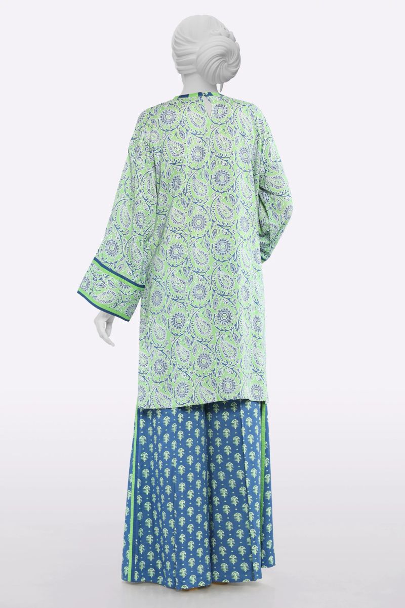 Plum 100% Cotton Lawn Green Colour Printed Yellow Green Flowers Embroidered Green threads On Stitched 2 pc suit for Girls.