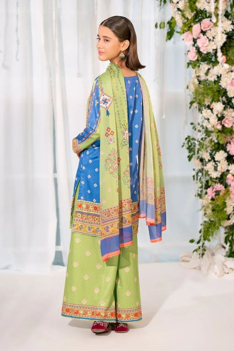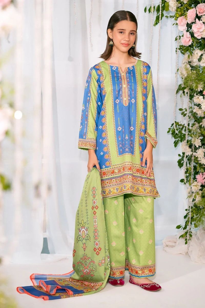 Top: Green & Blue Herringbone Digital Printed Kurta