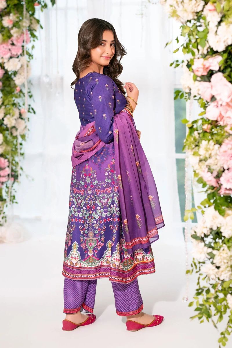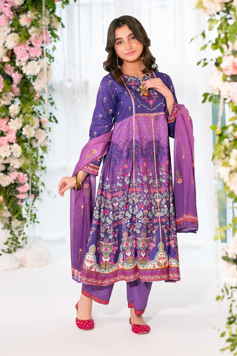 Top: Purple Herringbone Digital Printed Maxi with Tassels and Gota Laces
