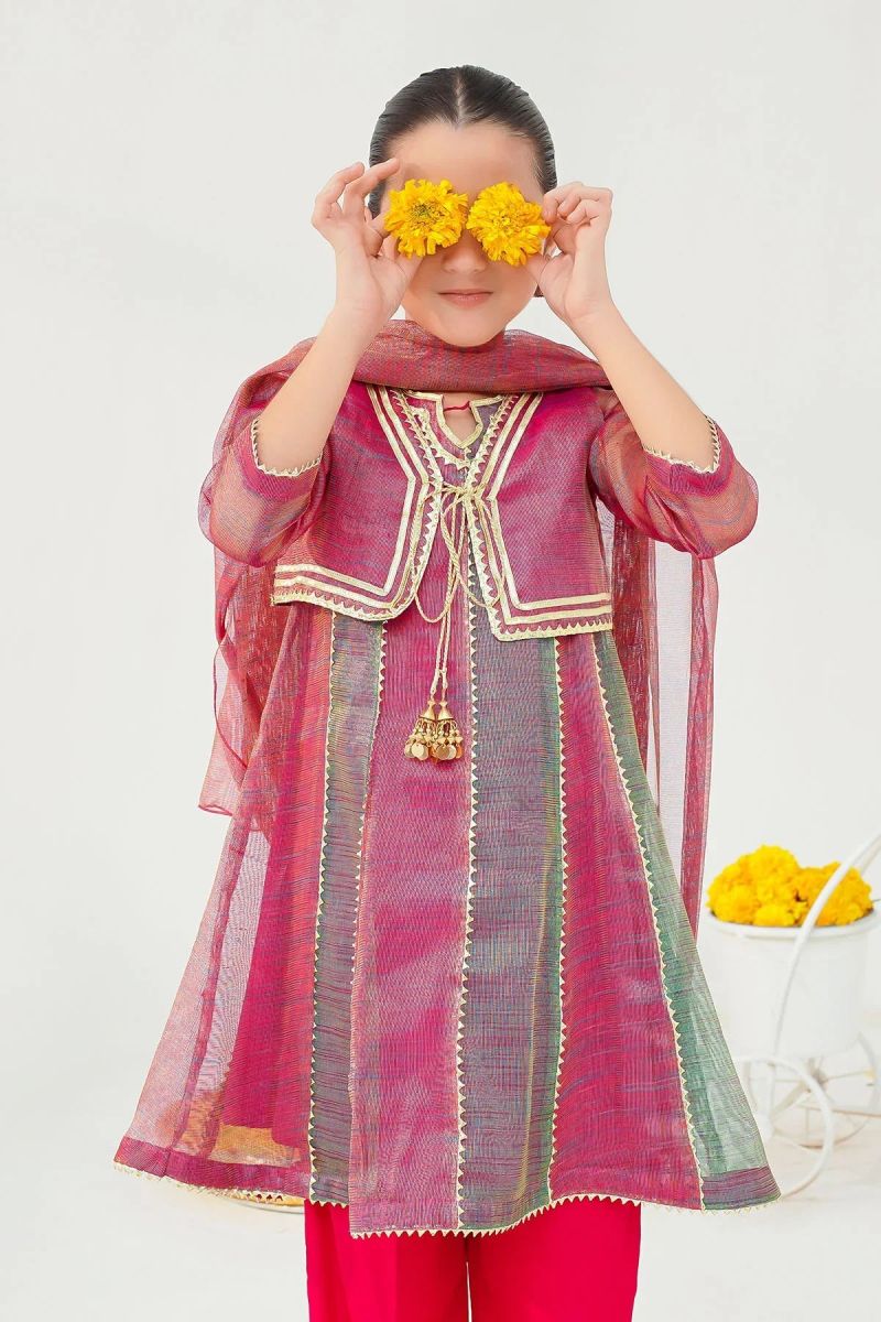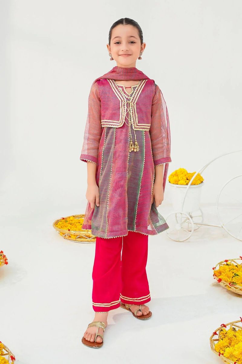 Plum Premium Khaddar Red Colour Printed Pink Blue White Flowers On 2 pc Stitched suit For Girls