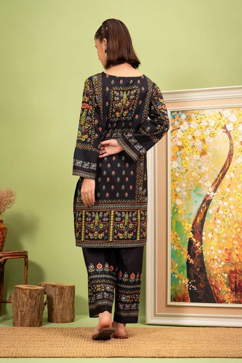 Bottom: Black Digital Printed Lawn Trouser