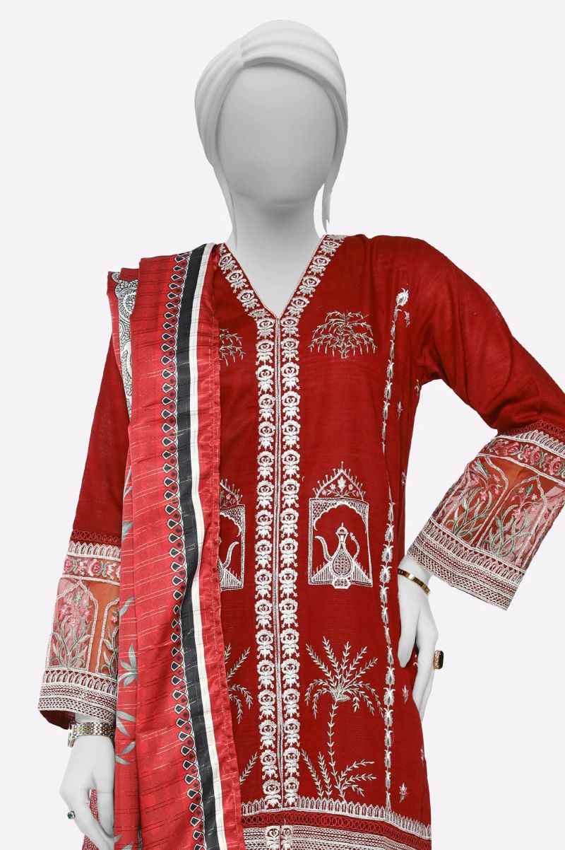 Maroon Embroidered 3PC