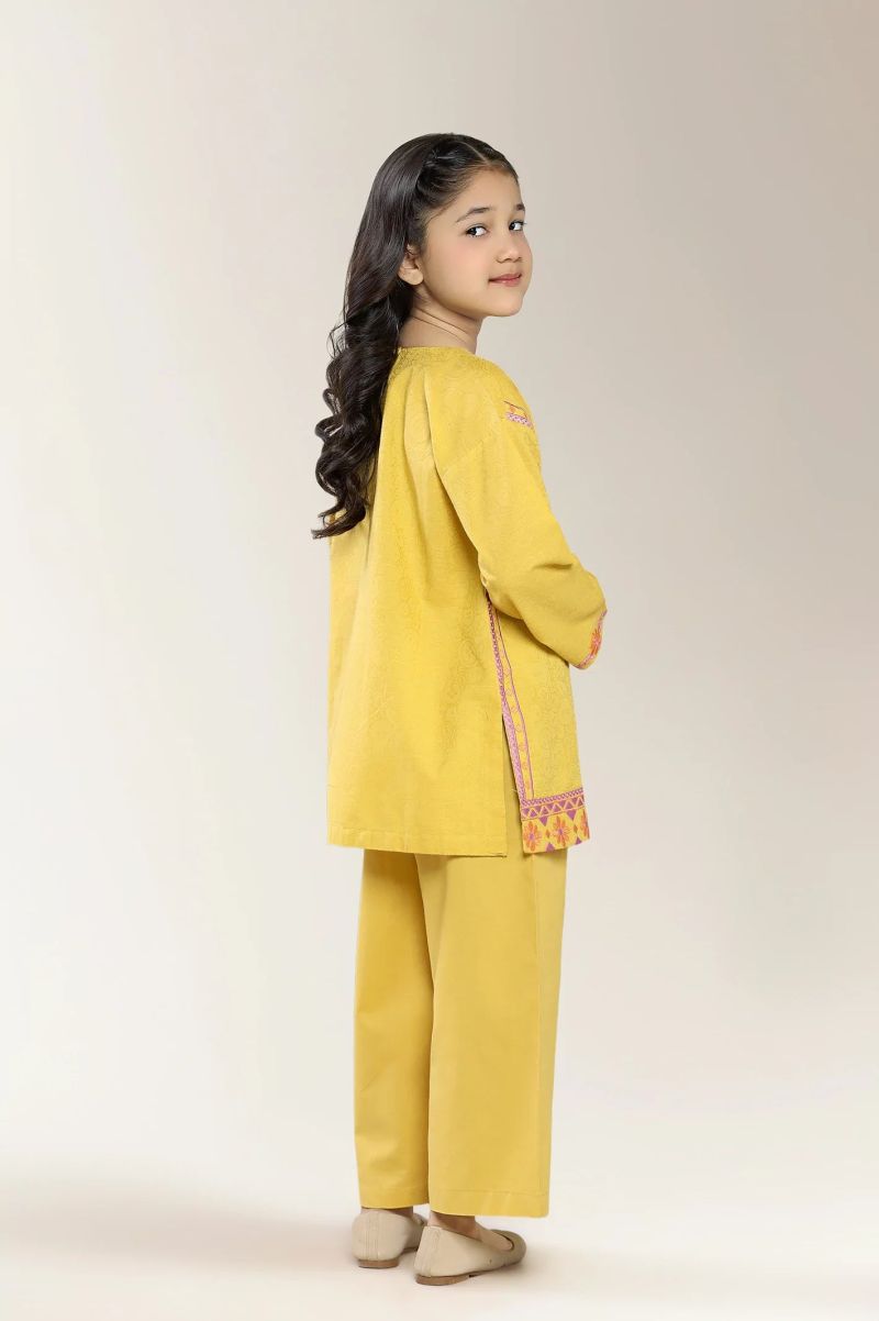 Embroidered Jacquard Mustard Girls 2PC