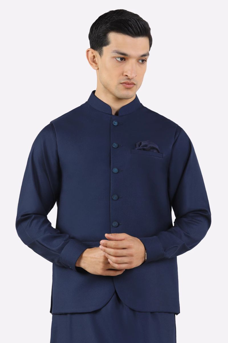 Navy Blue Shalwar Kameez with Waistcoat