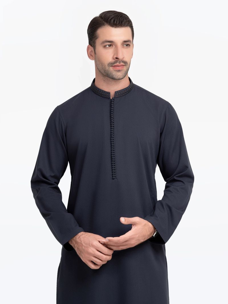 Men's Navy Blue Kurta Pajama