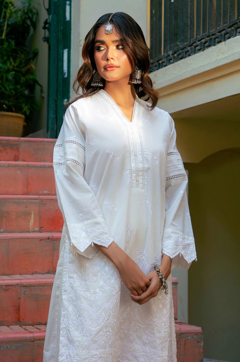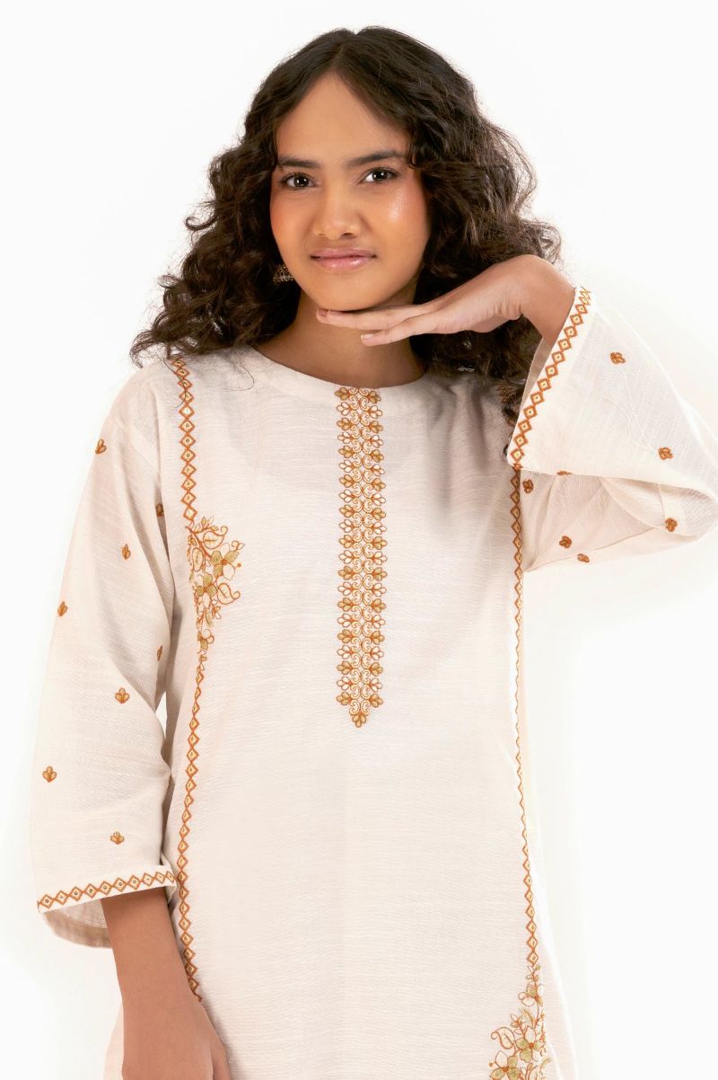 Plum 100% Cotton Lawn Black Colour Printed Almond Biege Flowers Embroidered Off White threads On Stitched 2 pc suit for Girls.