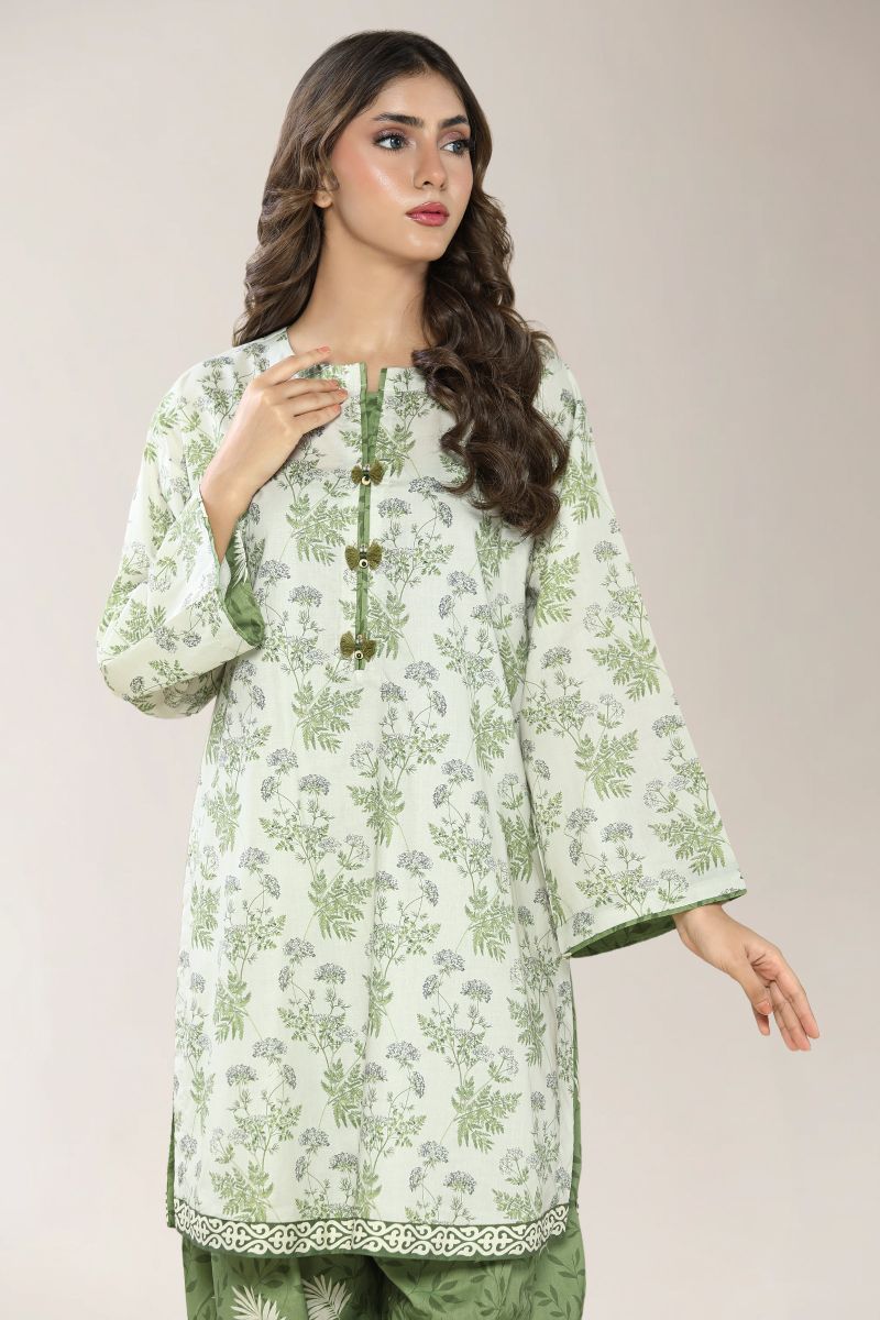 Basic Printed Viscose Linen-Olive Green 2PC