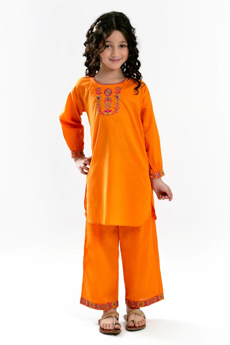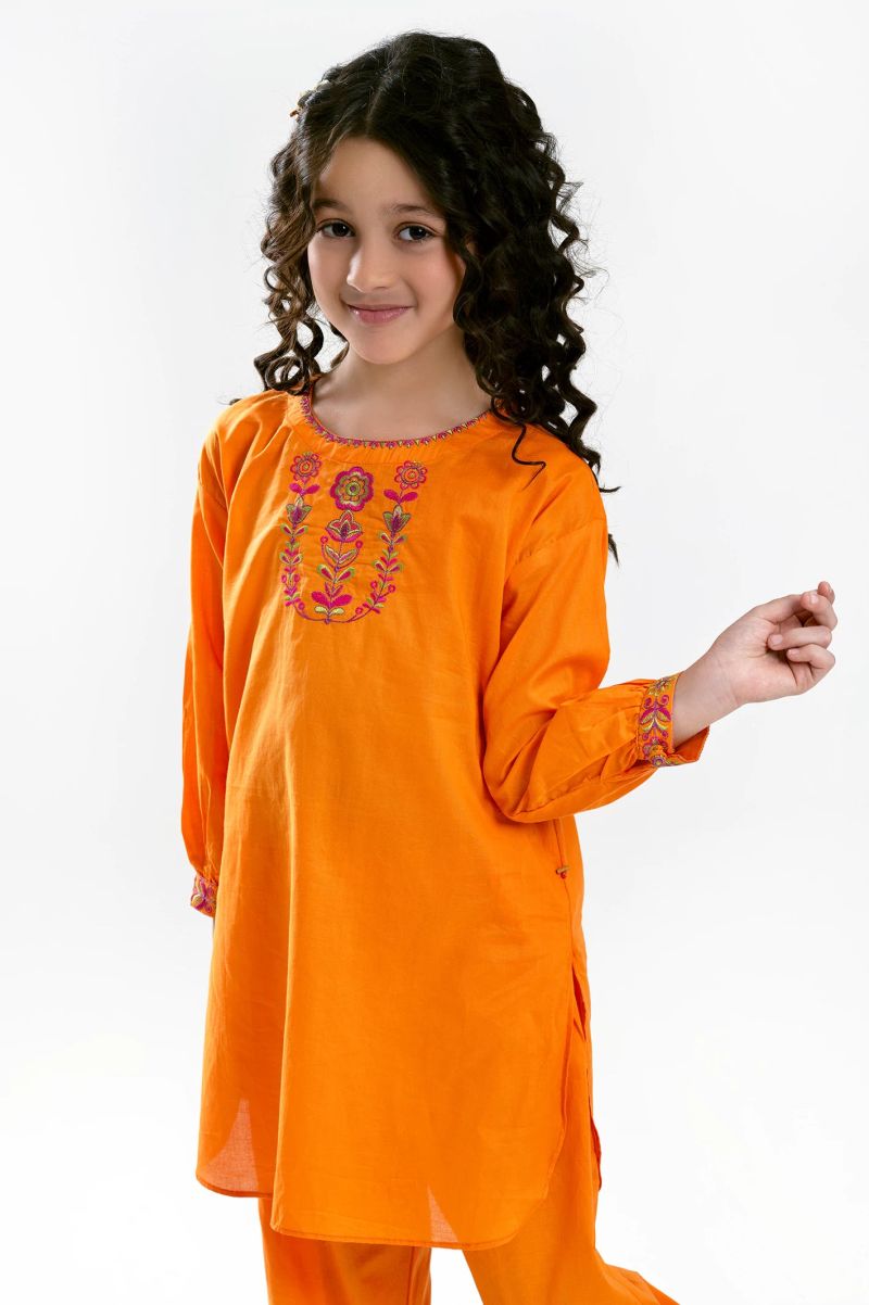 Orange Embroidered Girls 2PC