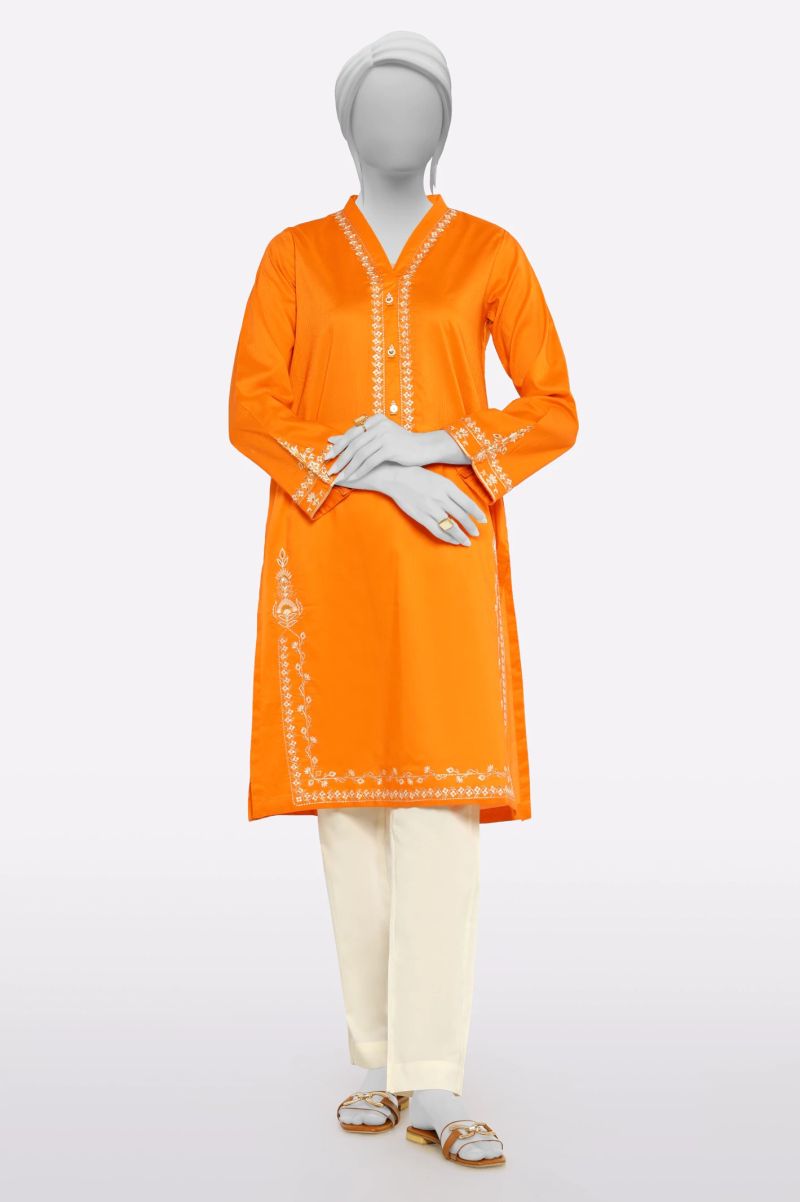 Plum Fine Lawn Red Carrot Colour Printed Blue Orange Flowers On 2 pc suit For Girls.