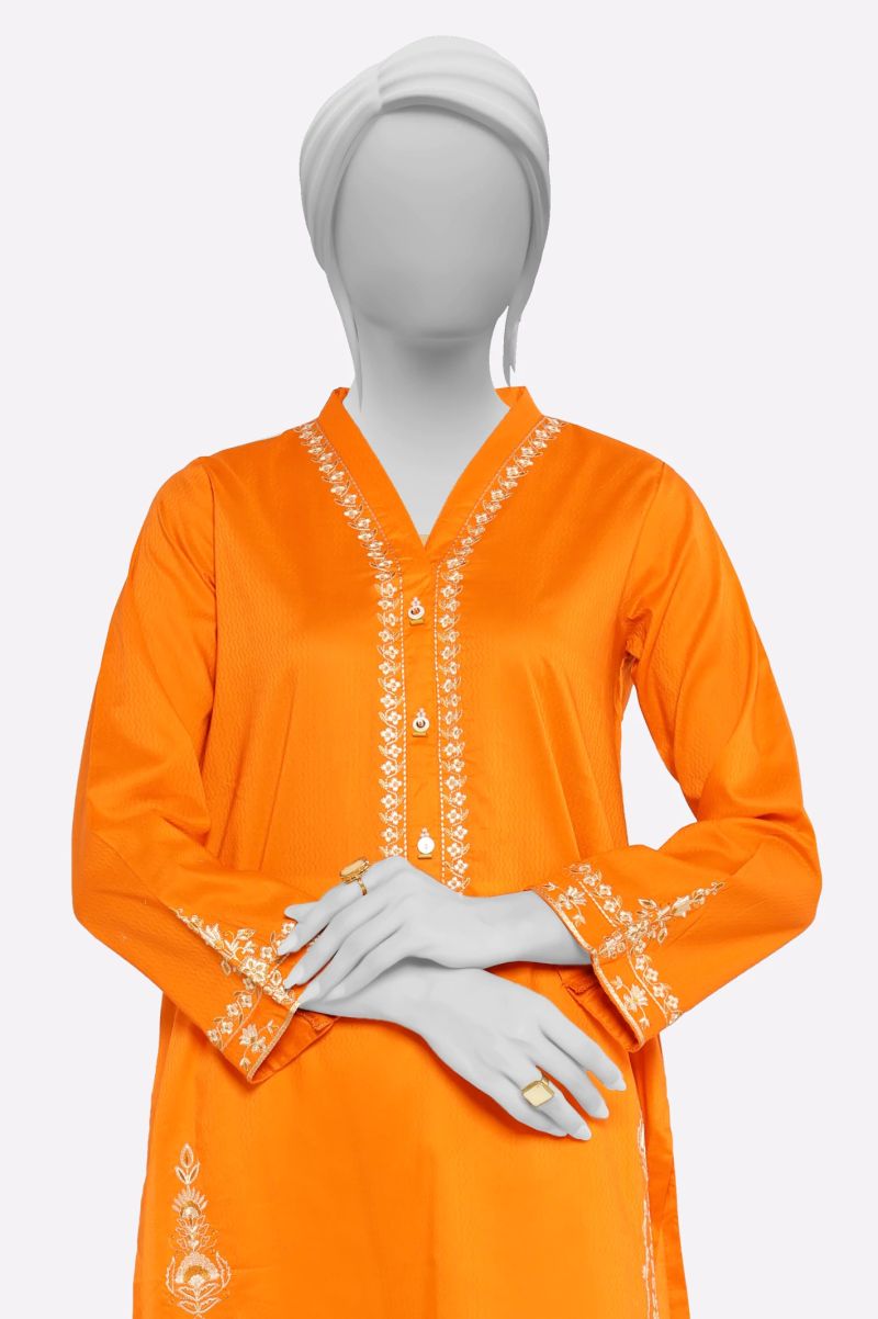 Plum Fine Lawn Mustard Colour Printed Red Orange Flowers Embroidered Red threads On 2 pc suit For Girls.