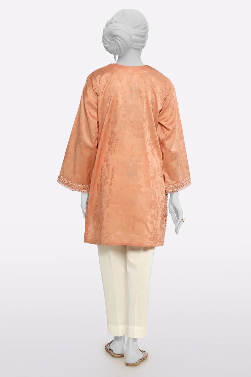 Plum 100% Cotton Lawn Peach Colour Printed Blue White Flowers Embroidered Blue threads On Stitched 2 pc suit for Girls.