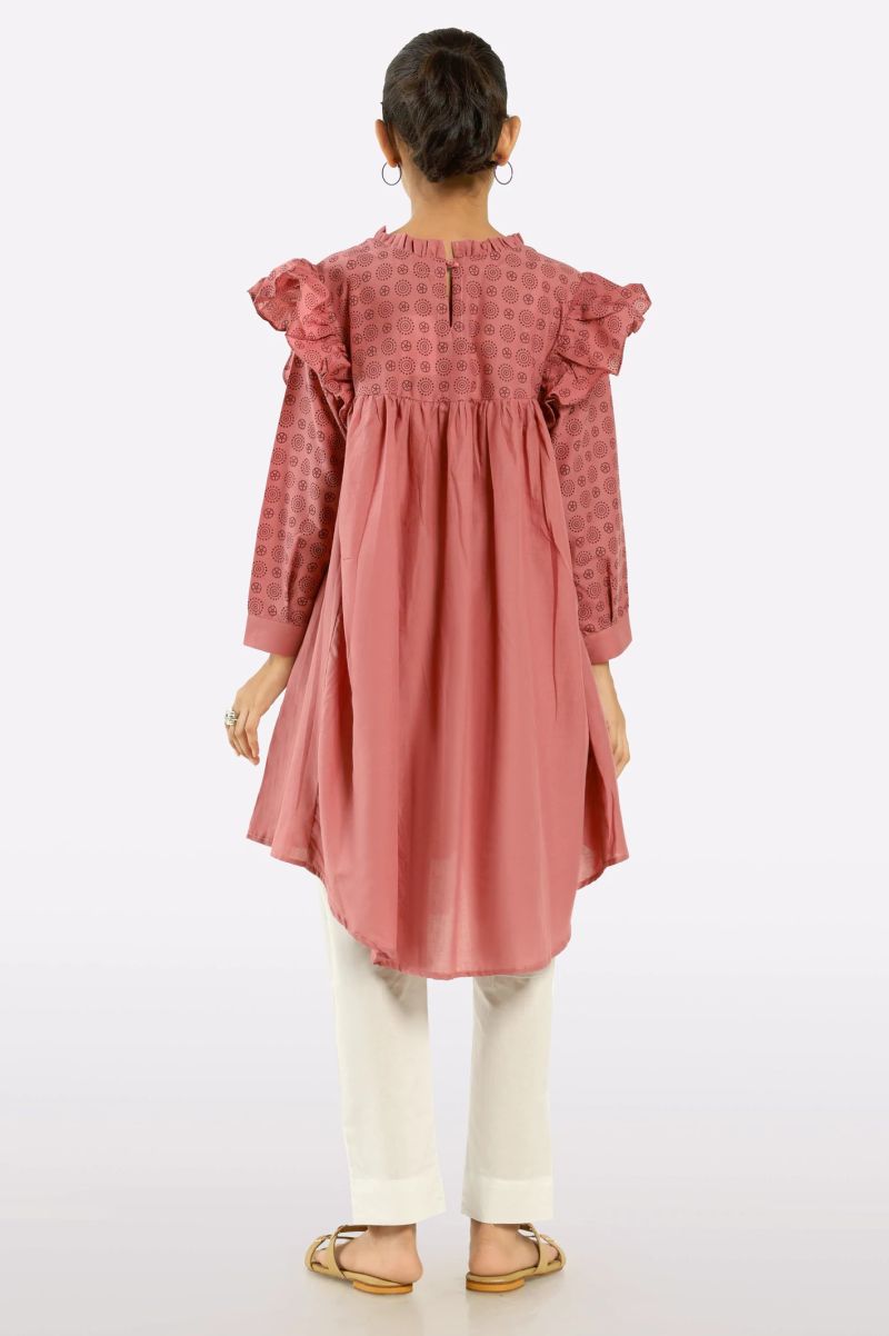 Plum 100% Cotton Lawn Pink Colour Printed White Burgundy Flowers Embroidered White threads On Stitched 2 pc suit for Girls.