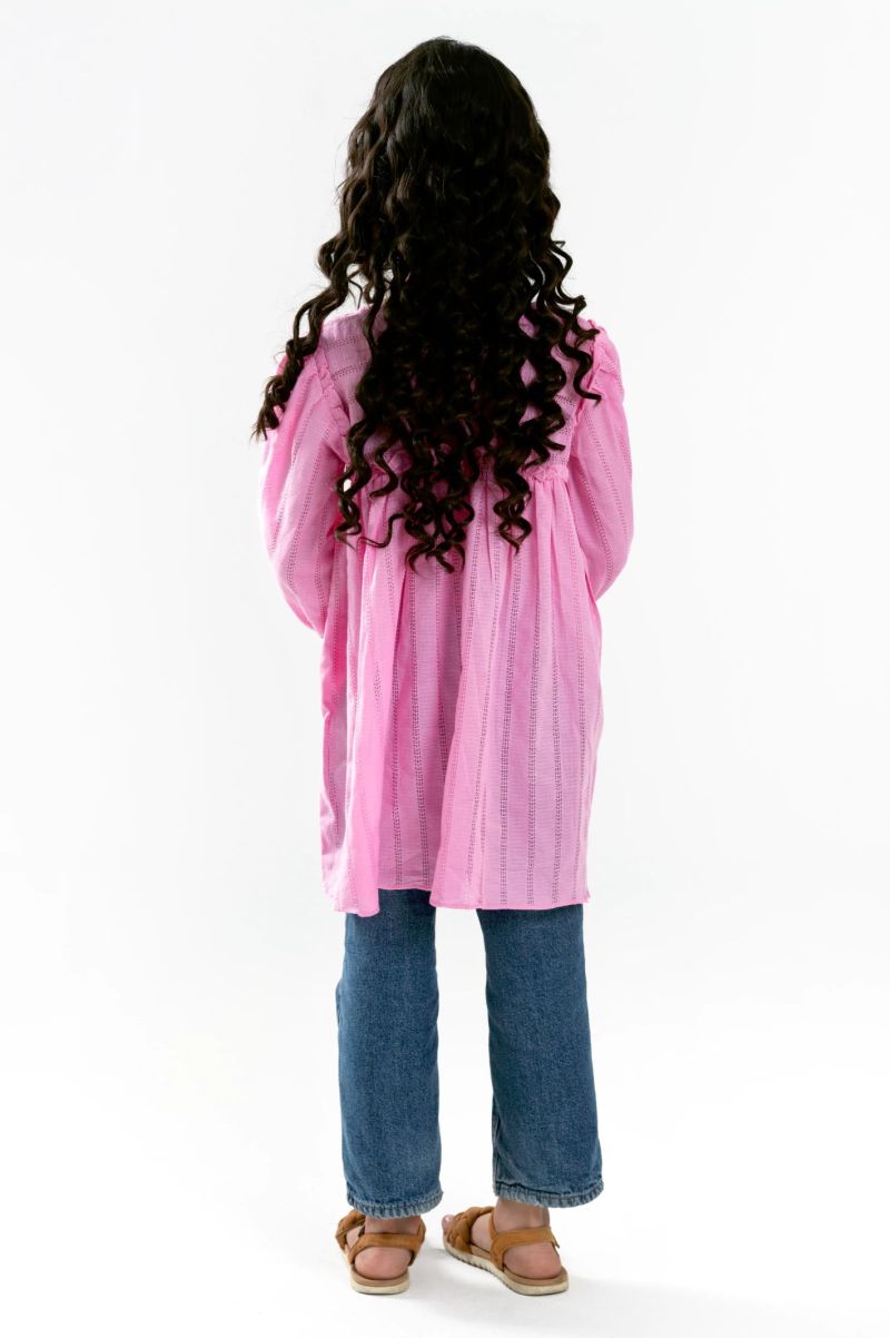 Plum 100% Cotton Lawn Pink Colour Printed White Burgundy Flowers Embroidered White threads On Stitched 2 pc suit for Girls.
