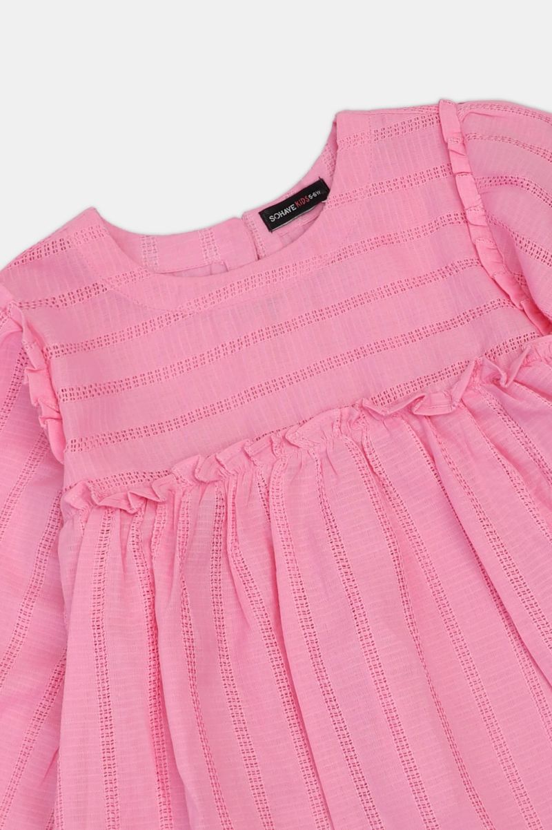 Plum 100% Cotton Lawn Pink Colour Printed Red Yellow Flowers Embroidered Dark Pink threads On Stitched 2 pc suit for Girls.