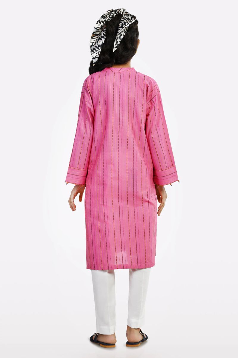 Plum 100% Cotton Lawn Pink Colour Printed Red Yellow Flowers Embroidered Dark Pink threads On Stitched 2 pc suit for Girls.
