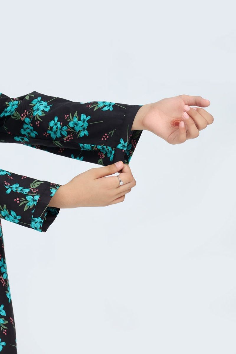 Liven up your little one's wardrobe with our Premium Quality Stitched 100% Soft Cotton Black Colour Printed with Sea Green Flowers Embroidered Sea Green threads on 2 pc suit ! Made from premium 100% Cotton for Autumn, this suit is not only high-quality, but also comfortable for all-day wear Casuals and Formals. Perfect for any stylish girl, this 2 pc suit is a must-have.