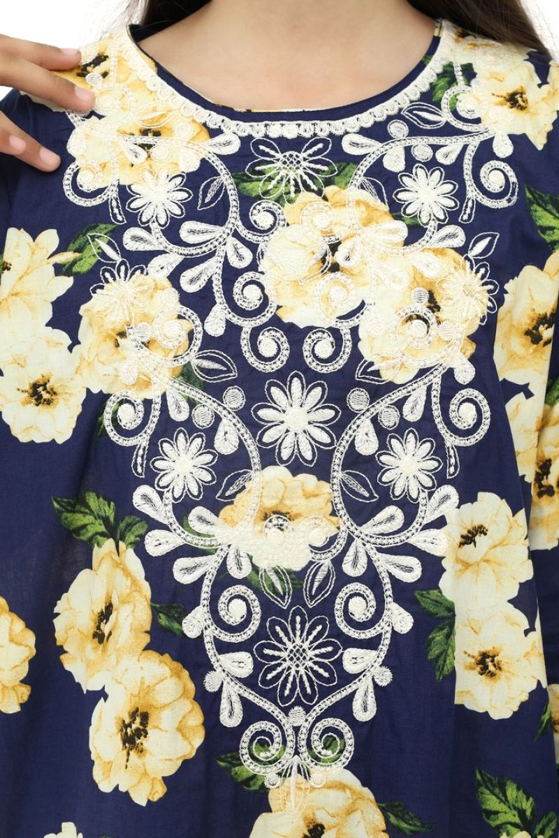 Liven up your little one's wardrobe with our Premium Quality Stitched 100% Soft Cotton Dark Blue Colour Printed with Yellow White Flowers Embroidered Off White threads on 2 pc suit ! Made from premium 100% Cotton for Autumn, this suit is not only high-quality, but also comfortable for all-day wear Casuals and Formals. Perfect for any stylish girl, this 2 pc suit is a must-have.