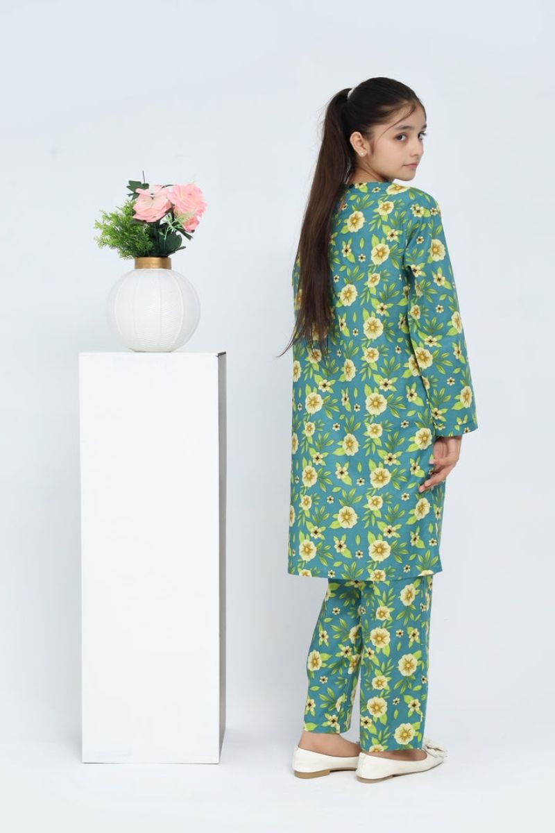 Liven up your little one's wardrobe with our Premium Quality Stitched 100% Soft Cotton Green Colour Printed with Yellow Green Flowers Embroidered Green threads on 2 pc suit ! Made from premium 100% Cotton for Autumn, this suit is not only high-quality, but also comfortable for all-day wear Casuals and Formals. Perfect for any stylish girl, this 2 pc suit is a must-have.