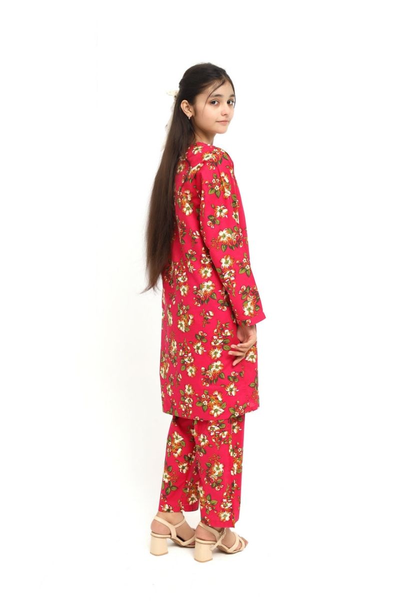 Liven up your little one's wardrobe with our Premium Quality Stitched 100% Soft Cotton Reddish Pink Colour Printed with White Mustard Green Flowers Embroidered White threads on 2 pc suit ! Made from premium 100% Cotton for Autumn, this suit is not only high-quality, but also comfortable for all-day wear Casuals and Formals. Perfect for any stylish girl, this 2 pc suit is a must-have.