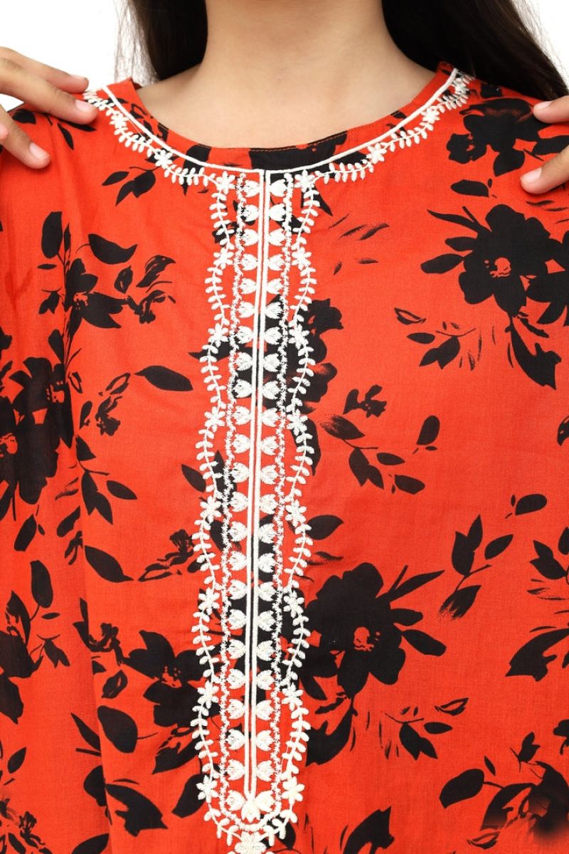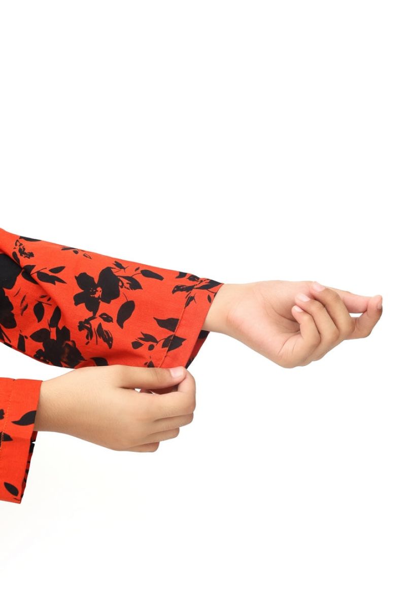 Liven up your little one's wardrobe with our Premium Quality Stitched 100% Soft Cotton Rust Colour Printed with Black Flowers Embroidered Off White threads on 2 pc suit ! Made from premium 100% Cotton for Autumn, this suit is not only high-quality, but also comfortable for all-day wear Casuals and Formals. Perfect for any stylish girl, this 2 pc suit is a must-have.