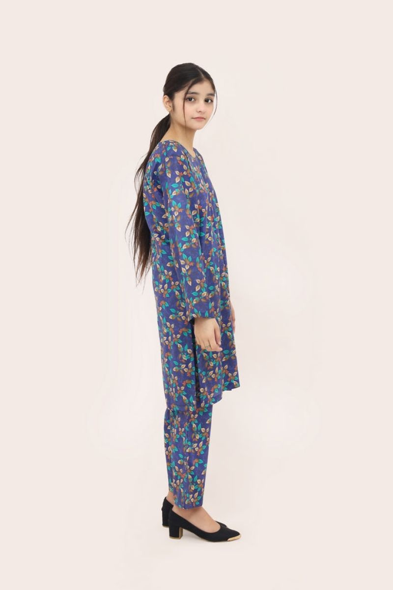 Liven up your little one's wardrobe with our Premium Quality Stitched 100% Soft Digital Lawn Blue Colour Printed with Sky Blue Beige Red Leaves on 2 pc suit ! Made from premium 100% Cotton for Summers, this suit is not only high-quality, but also comfortable for all-day wear Casuals and Formals. Perfect for any stylish girl, this 2 pc suit is a must-have.