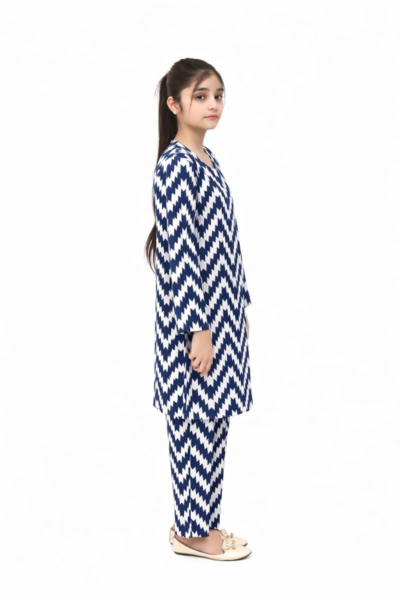 Elevate your girl's wardrobe with this stunning 2-piece stitched suit crafted from premium digital lawn fabric. Featuring an eye-catching dark blue base adorned with elegant off-white patterns, this ensemble combines traditional style with modern design. The pre-stitched construction ensures a perfect fit, while the breathable lawn material keeps her comfortable throughout the day. Ideal for casual wear, family gatherings, or special occasions, this versatile suit is a must-have addition to any young girl's collection.