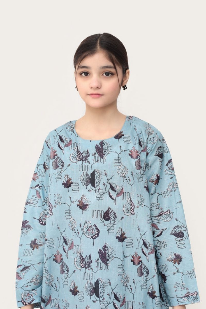 Liven up your little one's wardrobe with our Premium Quality Stitched 100% Soft Digital Lawn Light Blue Colour Printed with Black Grey Brown on 2 pc suit ! Made from premium 100% Cotton for Summers, this suit is not only high-quality, but also comfortable for all-day wear Casuals and Formals. Perfect for any stylish girl, this 2 pc suit is a must-have.