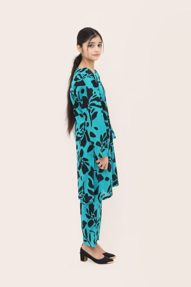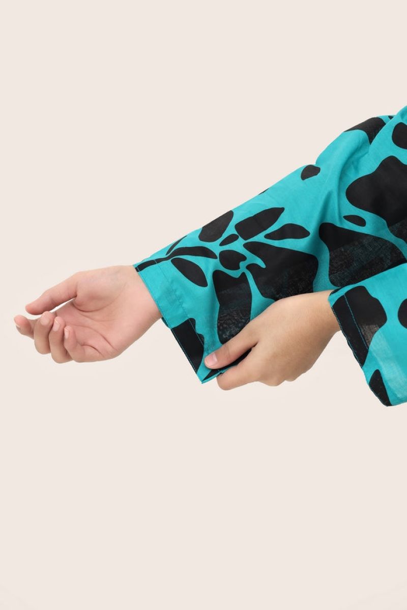 Liven up your little one's wardrobe with our Premium Quality Stitched 100% Soft Digital Lawn Sea Green Colour Printed with Black Flowers on 2 pc suit ! Made from premium 100% Cotton for Summers, this suit is not only high-quality, but also comfortable for all-day wear Casuals and Formals. Perfect for any stylish girl, this 2 pc suit is a must-have.