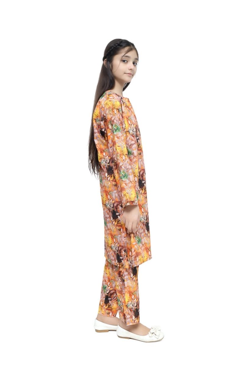 Liven up your little one's wardrobe with our Premium Quality Fine Lawn Yellow Brown Green Colour Printed Leaf Motifz on 2 pc suit ! Made from premium 100% Cotton for Summer, this suit is not only high-quality, but also comfortable for all-day wear Casuals and Formals. Perfect for any stylish girl, this 2 pc suit is a must-have.