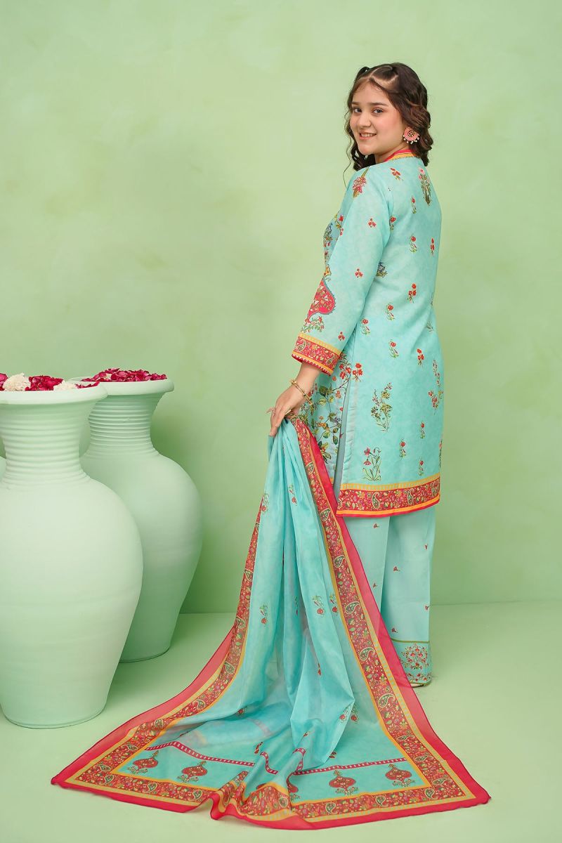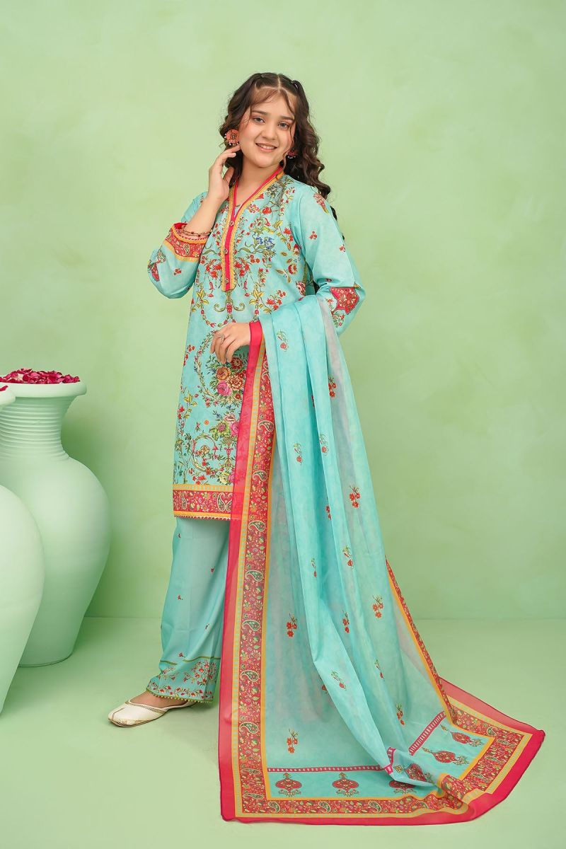 Bottom: Sky Blue Poly Lawn Digital Printed Trouser