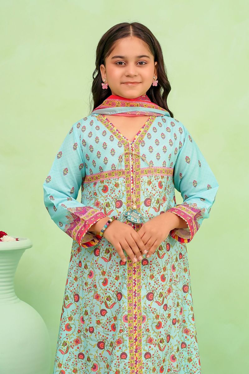 Top: Blue Poly Lawn Digital Printed Kurta with Tassels and Gota Lace