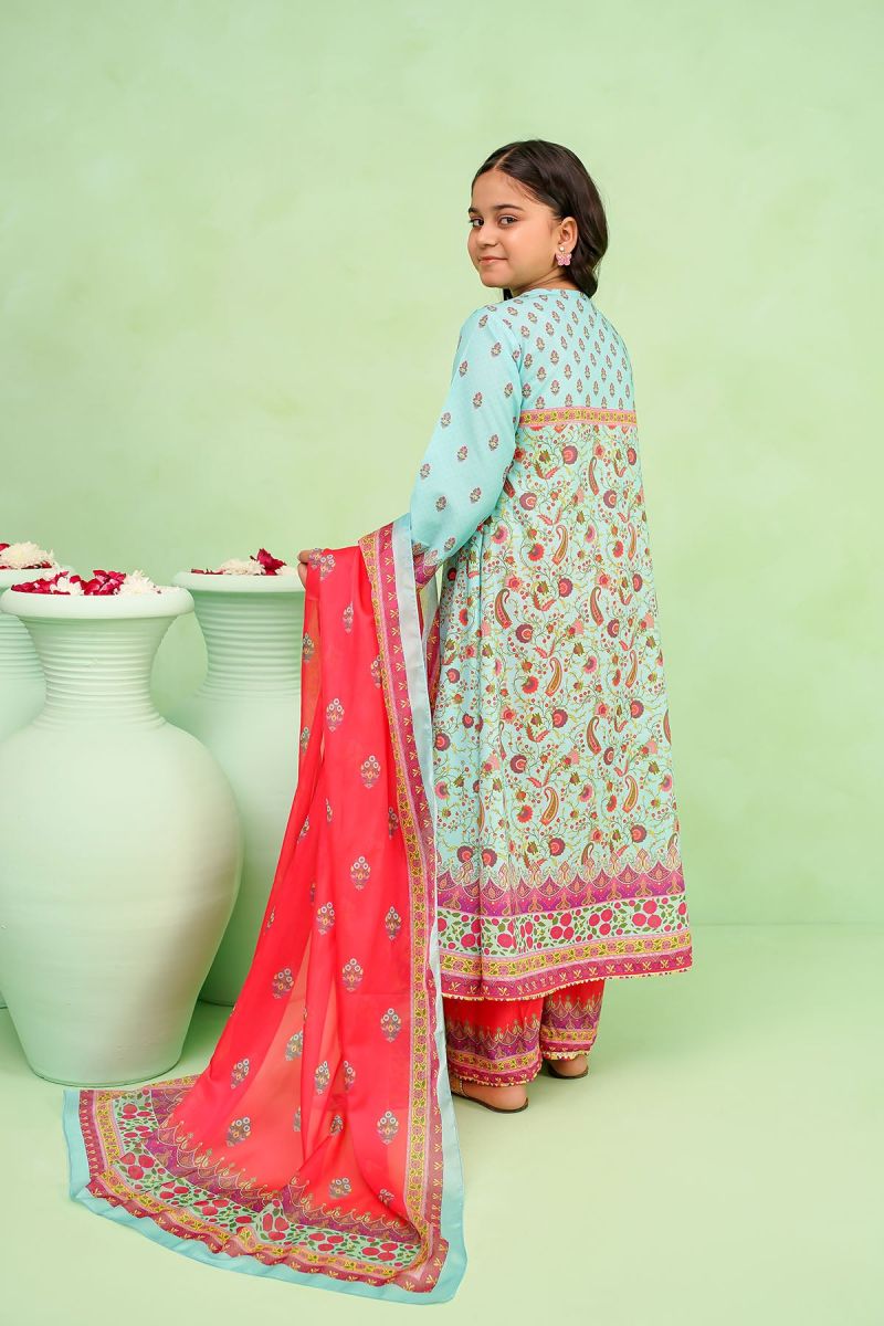 Bottom: Coral Pink Poly Lawn Digital Printed Trouser