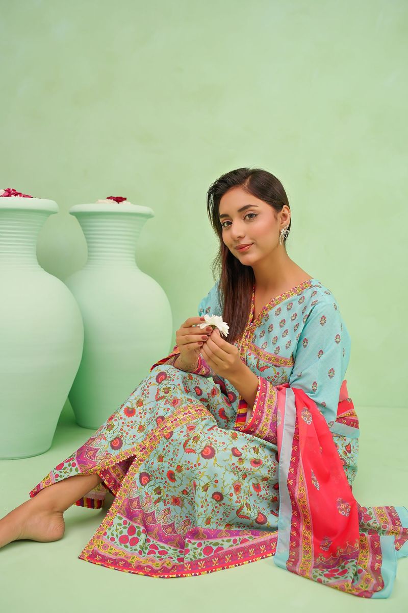 Bottom: Coral Pink Poly Lawn Digital Printed Trouser