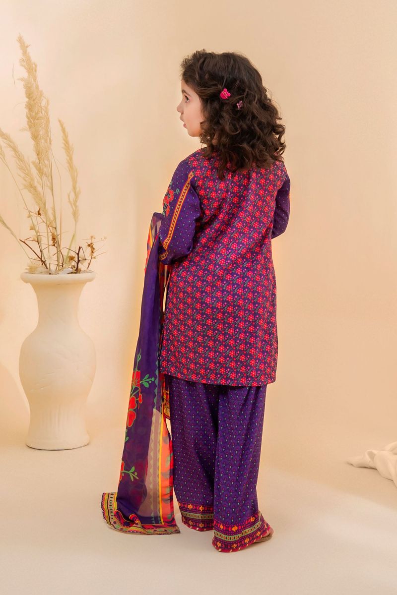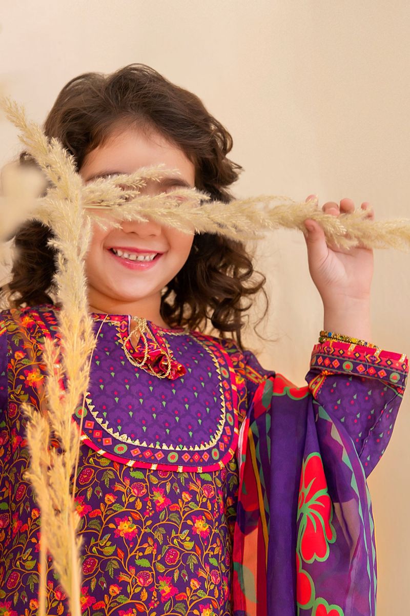 Top: Purple Poly Lawn Digital Printed Kurta with Gota Laces