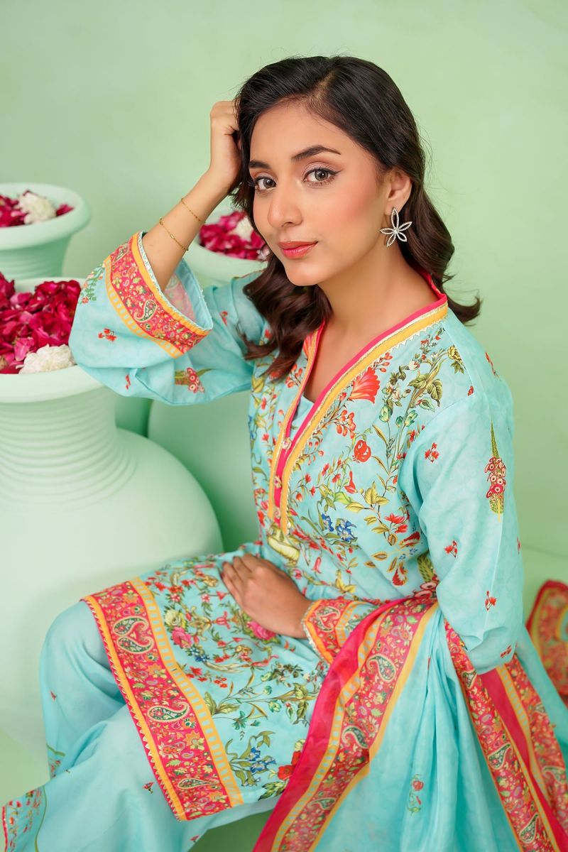 Bottom: Sky Blue Poly Lawn Digital Printed Trouser