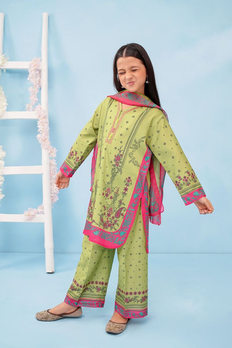 Top: Lime Green Poly Lawn Digital Printed Kurta