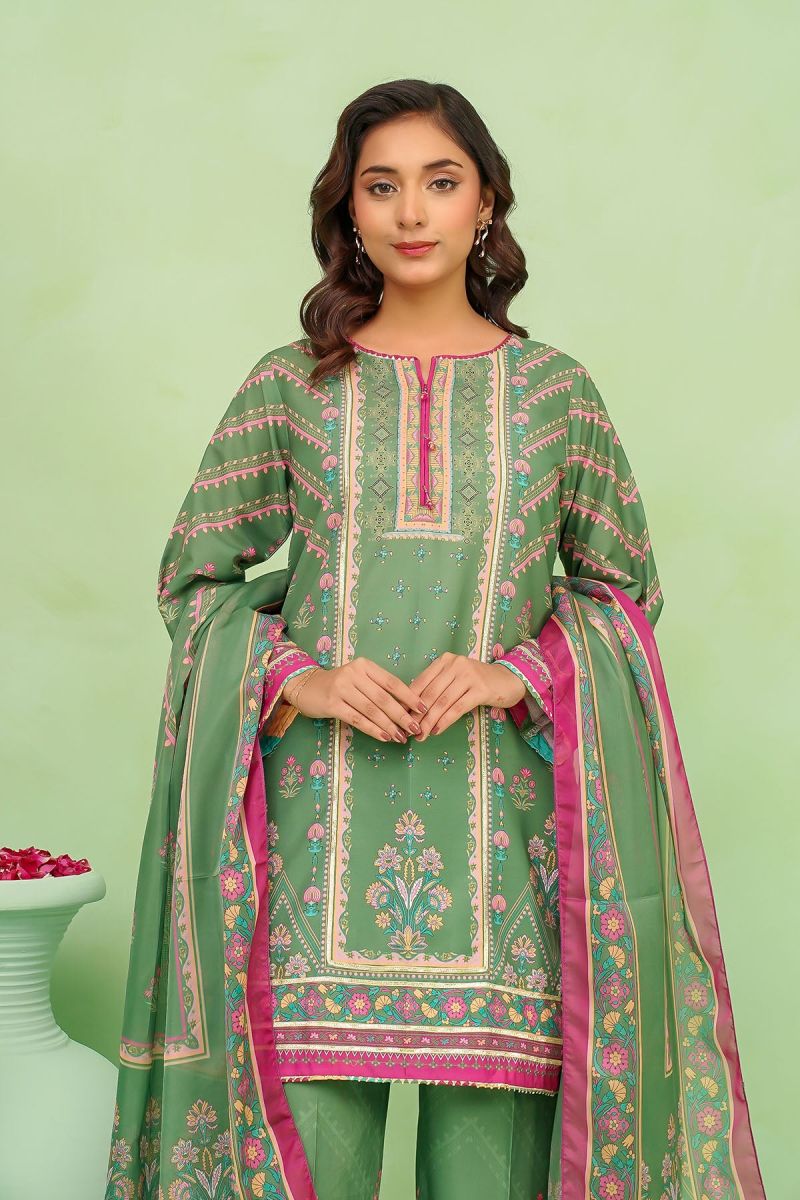 Bottom: Olive Green Poly Lawn Digital Printed Trouser