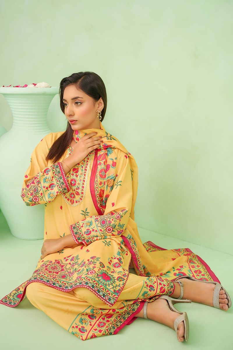 Bottom: Mustard Yellow Poly Lawn Digital Printed Trouser