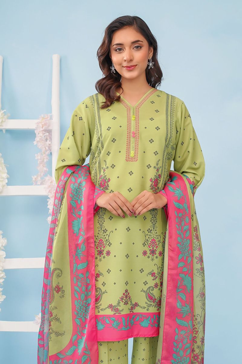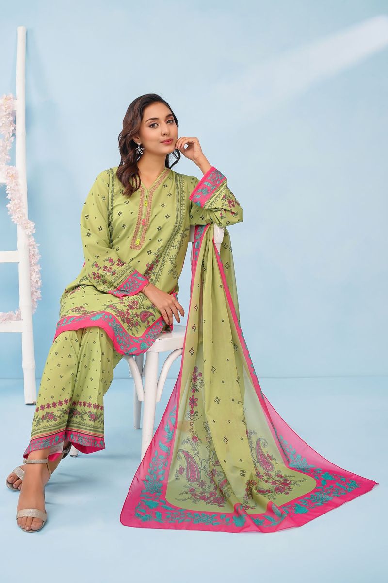 Bottom: Lime Green Poly Lawn Digital Printed Trouser