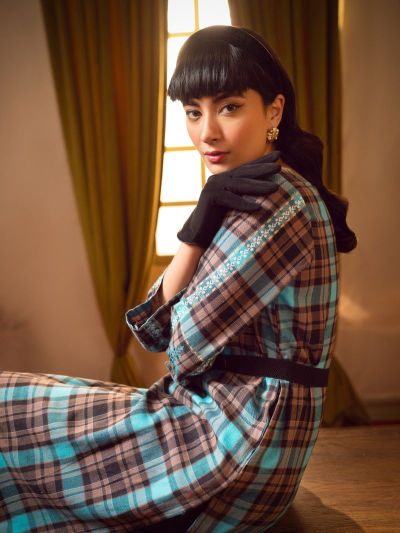 Plum Premium Khaddar Black Colour Printed Golden Leaves On 2 pc Stitched suit For Girls